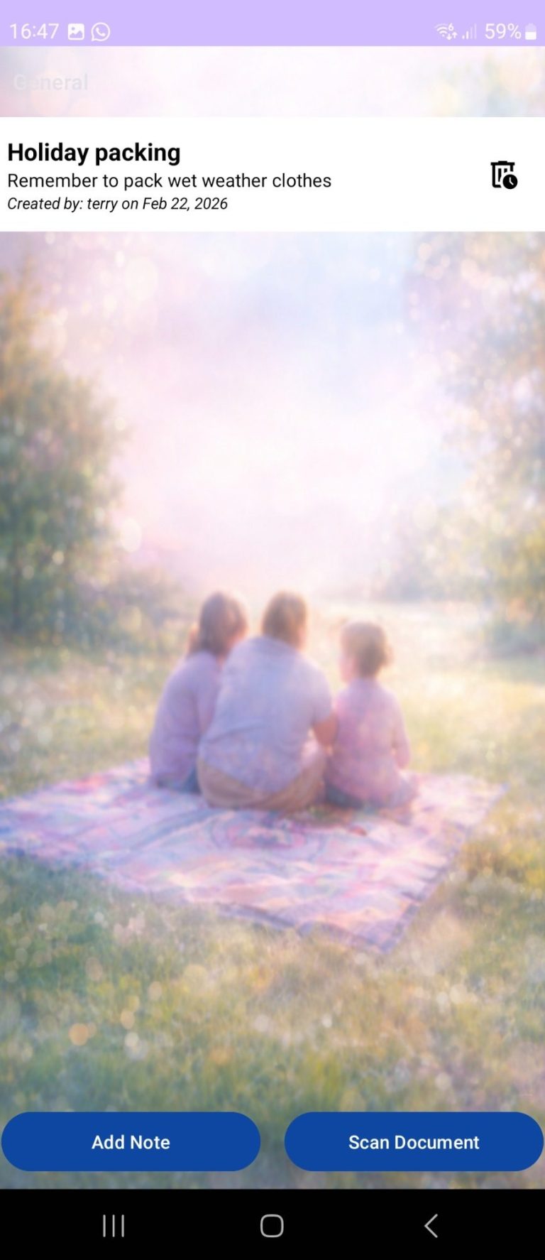 Babysitter mode. Allows babysitter to be aware of important events yet locks your personnel information away. Save and see notes from all users and scan important documents to be shared. Add and remove users anytime keeping your data safe.