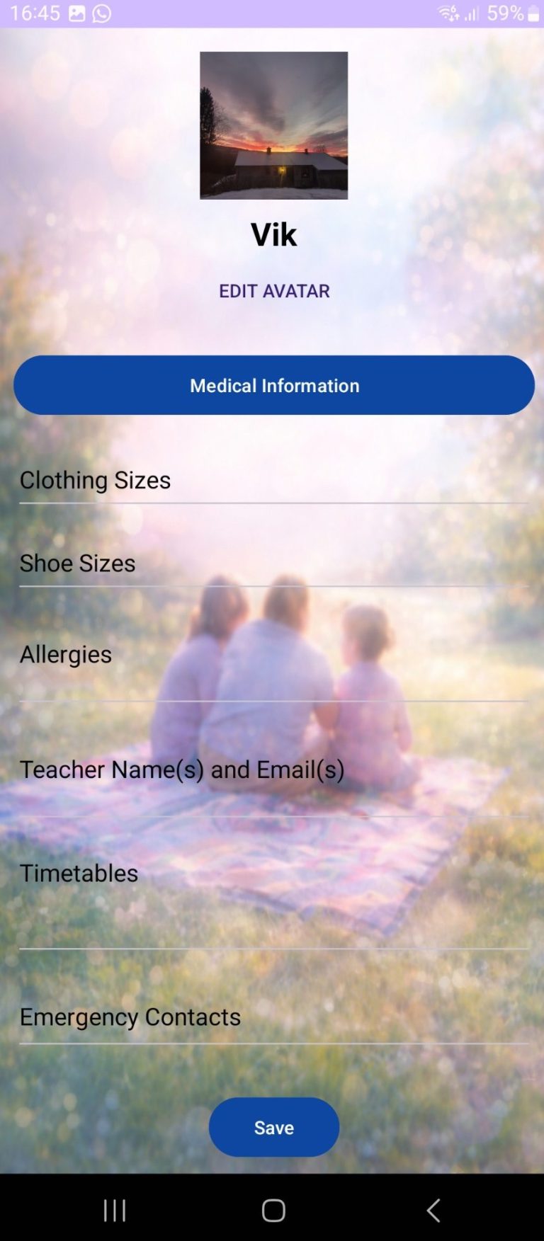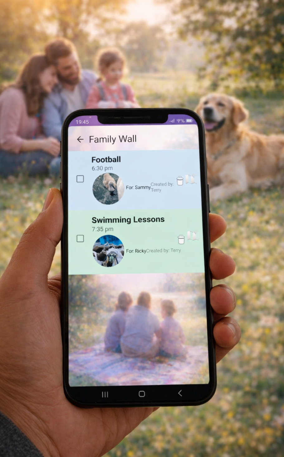 Navigate effortlessly with an intuitive design tailored for families. Add photos of loved ones so you can find them at a glance. Each child added can have there own photo and the own color code events