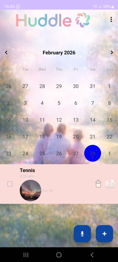 Easily share important dates and reminders with your family. Share photos, clothing information. Medical reminders. Use the built in voice event store so no more typing. Tell huddle the event, location date and time. Huddle will take care of the rest.